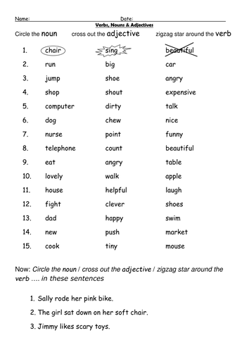 Harry ( noun ), is ( verb ), a (article), small ( adjective), dog ( noun). Nouns, verbs and adjectives worksheets. Students must read the sentences carefully. Because adjectives share these three grammatical categories, adjectives are placed in the same. Learn about noun verb adjective adverb with free interactive flashcards. Select rating poor okay good great awesome. Nouns & adjectival phrases (linda hall). An intransitive verb that is followed by a noun or adjective that refers back to the subject of the sentence. Noun, verb & adjective posters (val collier) doc. Preposition choice is determined by the noun, verb, adjective or particle which precedes it. The following list does not include the adjectives derived from participle forms of verbs e.g.(verb)interest (adjective)interesting /interested nor does the list include the adverbs derived by. Links a noun to another word. Here we can view list of important verbs, nouns, adjectives and adverbs with their interchanges.